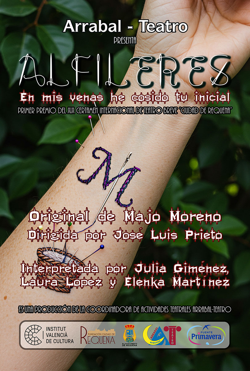 La obra “Alfileres, en mis venas he cosido tu inicial”, Primer Premio del XIX Certamen Internacional de Teatro Breve “Ciudad de Requena”, en su edición de 2023, será nuevamente repuesta por Arrabal-Teatro; el próximo domingo 14 de diciembre, a las 19:00 horas, en el Teatro Principal de Requena.